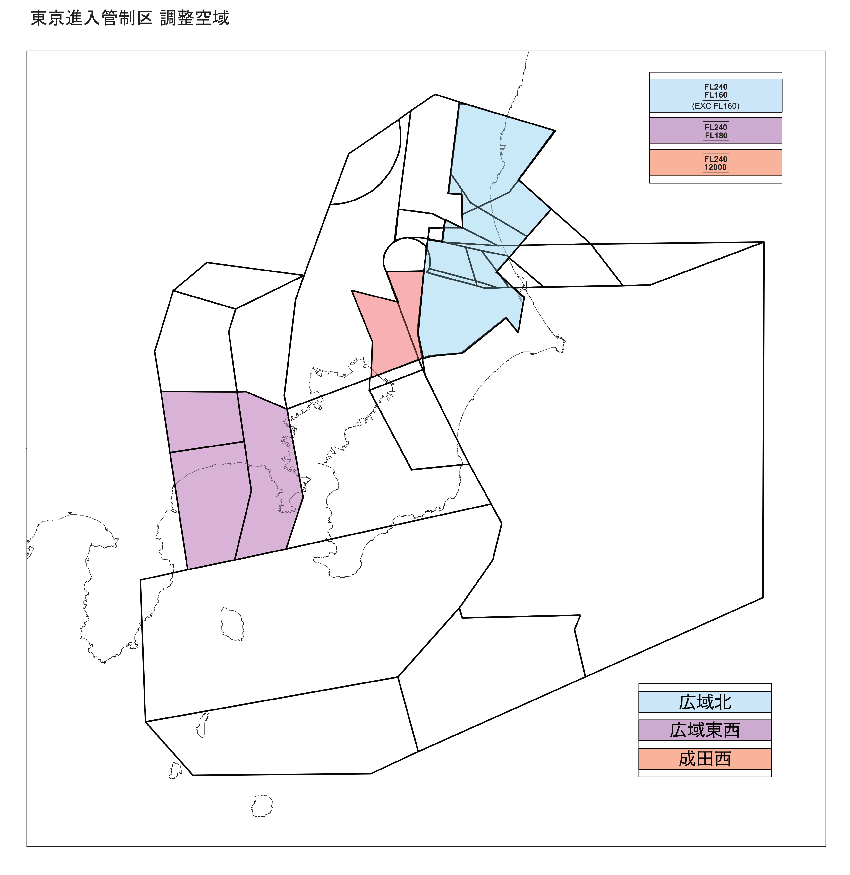 - 広域北調整空域*及び成田西調整空域*における管制権限を成田セクターに移管するものとする。また、安全上の理由等により当該調整空域内を管制する必要がある場合は成田セクターと調整するものとする。